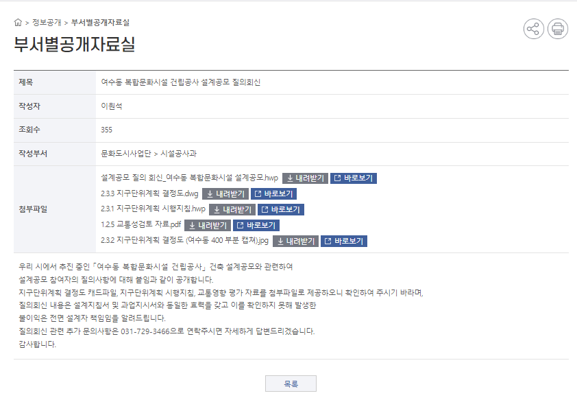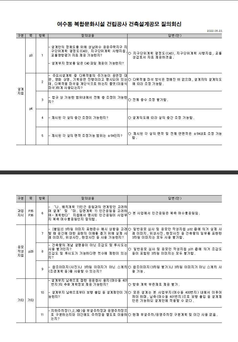 [2022.02] 여수동 복합문화시설 건립공사 설계공모 질의회신
