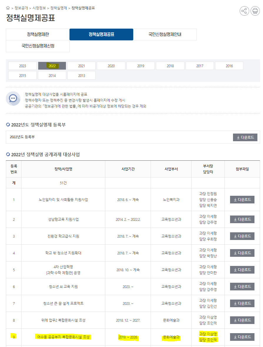 [2022] 정책실명제공표 여수동 공공부지 복합문화시설 조성